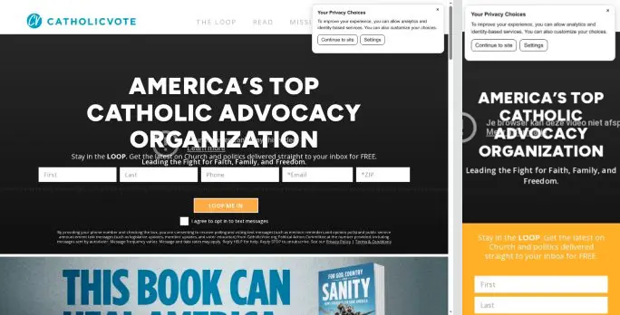 CatholicVote is a U.S. Catholic advocacy group that promotes faith, family, and freedom. The site offers news and updates about the Catholic Church and politics, a free email newsletter, and tools to track events like attacks on churches and pro-life groups. It shares clips and opinions and invites people to support its work. Overall, it aims to inform Catholics and supporters and encourage public advocacy on church and policy issues.