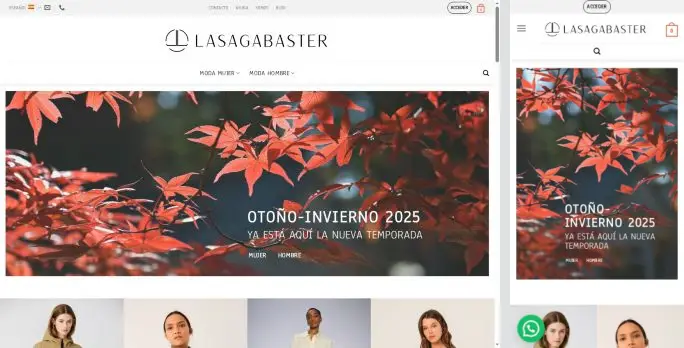 LASAGABASTER is an online fashion store for men and women. It sells autumn-winter clothes—coats, jackets, sweaters, pants, and shoes—and highlights a new season collection. The site offers free shipping on orders over €50, a small shipping fee otherwise, and delivery within 24 hours or 24-48 hours. It provides guaranteed returns and has almost 100 years of fashion experience. It mixes local shop values with online shopping and covers urban, casual, and formal styles. The site uses cookies to improve the experience.